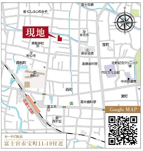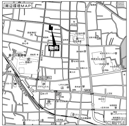 身延線「西富士宮」駅から徒歩7分。コンビニやスーパーも徒歩圏内にあり生活の利便性が大変利便性がよいエリアです。