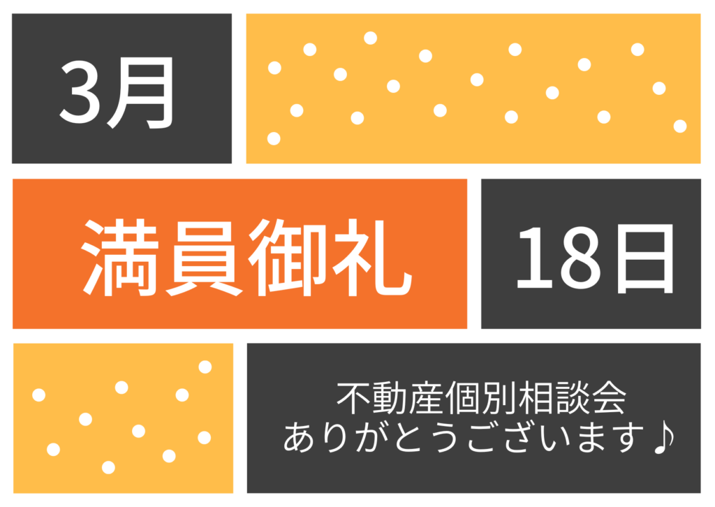 3月18日(水)開催の不動産個別相談会は満員となりました。