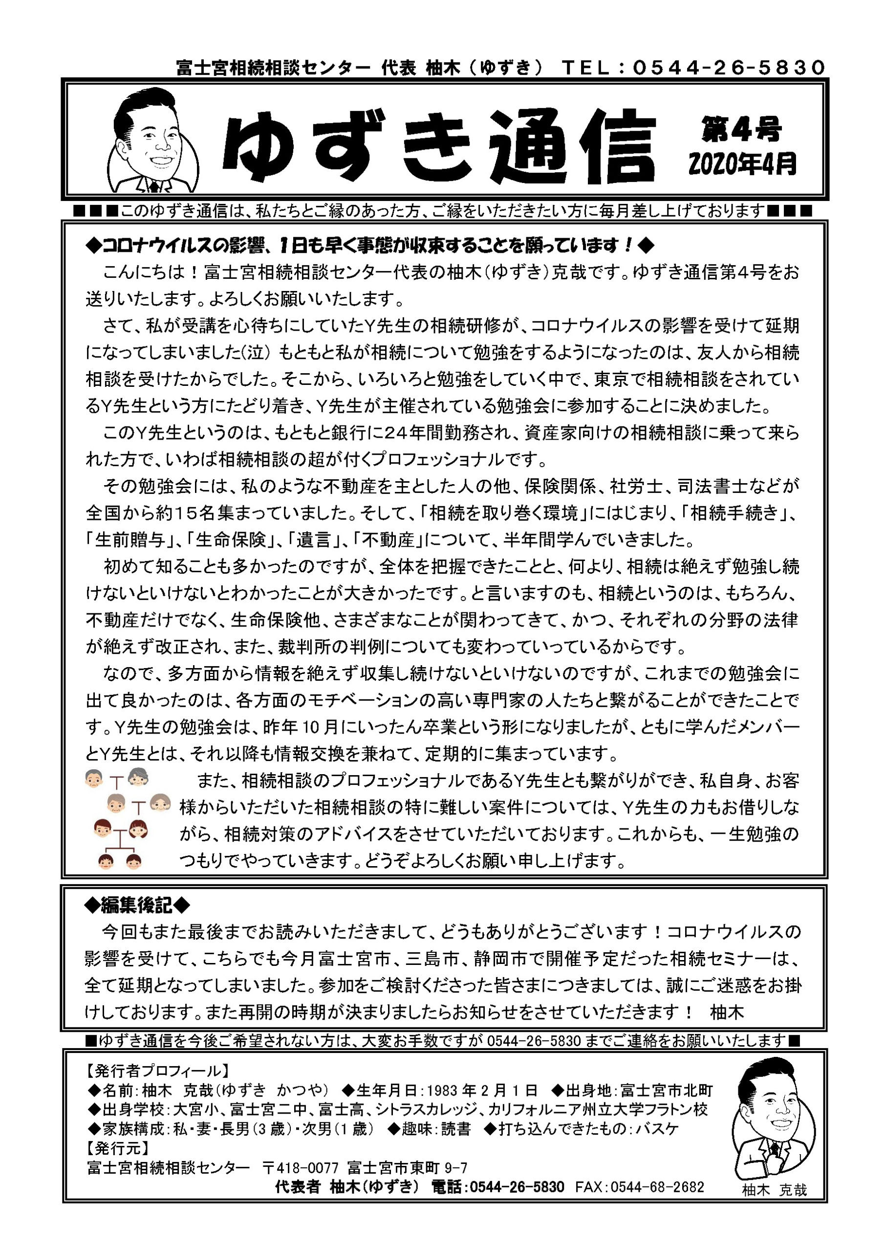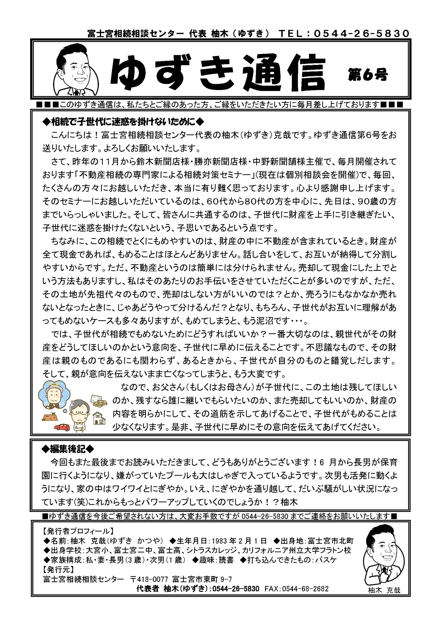 ゆずき通信過去発行号(第1号〜第6号) 2021年5月13日 これまで、富士宮相続相談センターより発行してきましたゆずき通信ですが、有り難いことに「過去に発行した分を読みたい」と多方面でお声をいただきましたのでまとめて掲載させていただきます。ご一読いただけましたら幸いです。 ゆずき通信第1号 ゆずき通信第2号 ゆずき通信第3号 ゆずき通信第4号 ゆずき通信第5号 ゆずき通信第6号 一覧に戻る 次の記事